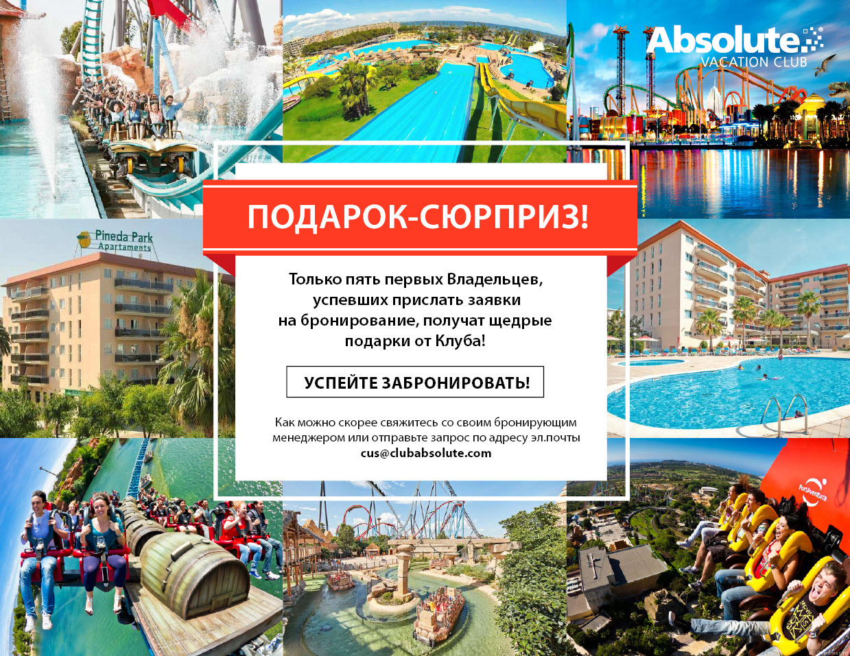 Знаете, как поощрить своих детей за год усердной учебы, а себя — за ангельское терпение и выдержку? Забронируйте размещение на 1, 8 или 15 июня на курорте Pineda Park (Коста Дорада, Испания) и получите подарок-сюрприз в честь начала летних каникул! Только пять первых Владельцев, успевших прислать заявки, получат щедрые подарки от Клуба! Какие? Узнаете в момент бронирования!