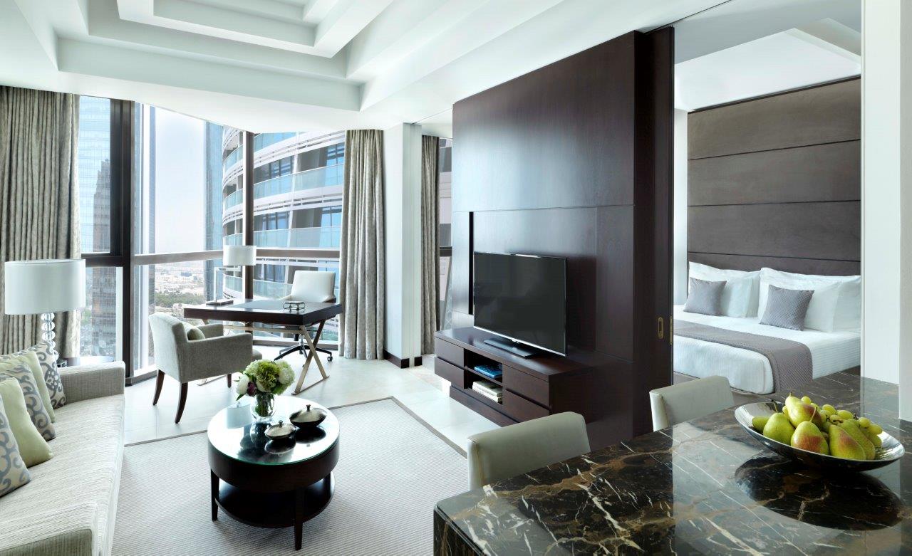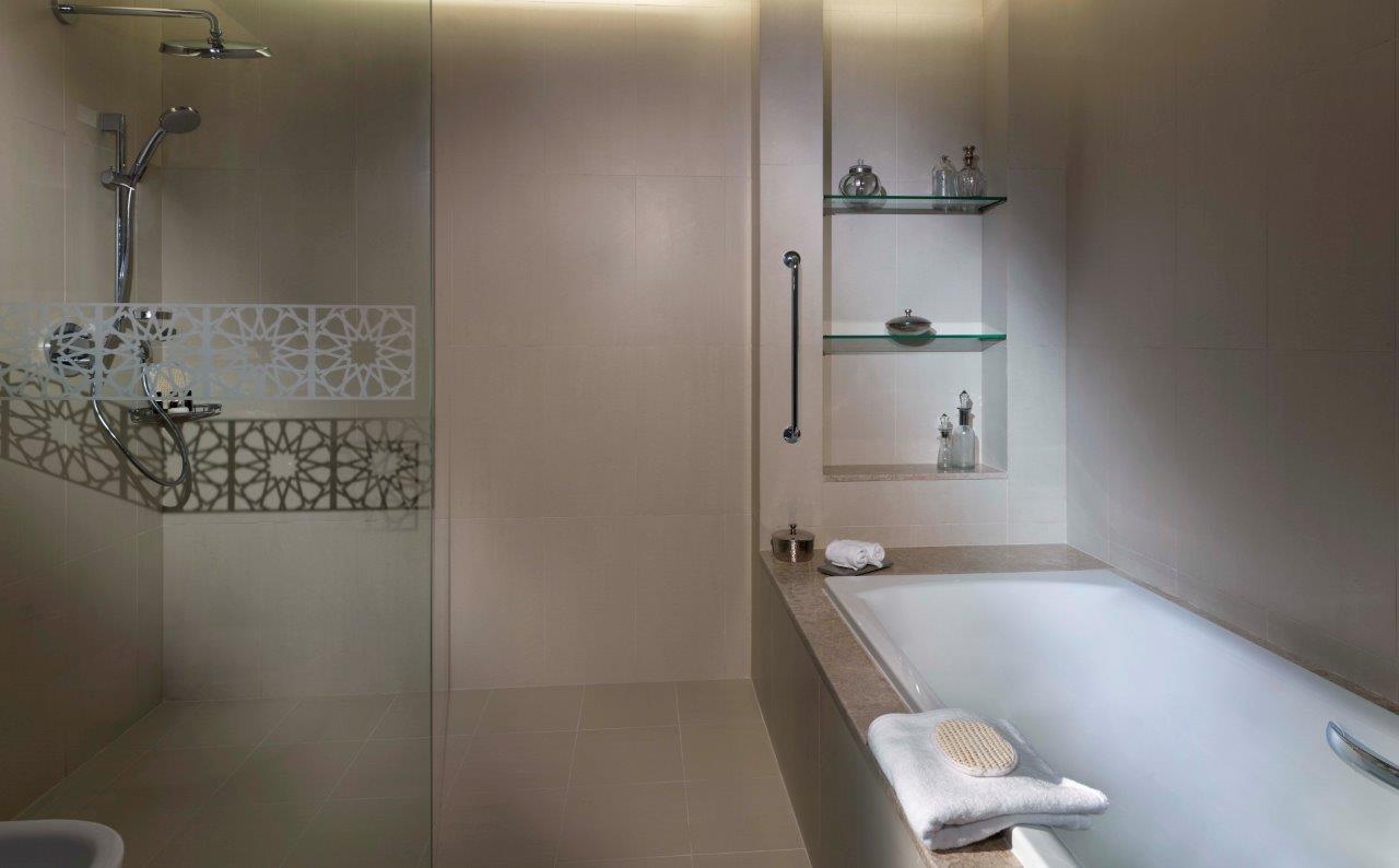 Номера с живописными видами оформлены в современном стиле с влиянием арабской культуры: потолки с росписью, сенсорные технологии, элементы марокканского дизайна и цветовые акценты, отражающие этот впечатляющий многоцветный город в пустыне. Роскошные мраморные ванные комнаты с ваннами, душевыми кабинами и качественными удобствами.